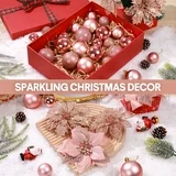 - 【Christmas Ornaments Set】Total 92pcs rose glod Christmas tree decoration baubles. Include 24 Balls Ornaments, 16 Snowflakes, 30 Crystal Ornaments, 10 Artificial Berry Stems, 12 Christmas Flowers.