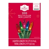 - Holiday Time Indoor/Outdoor 100-Count Incandescent Mini Christmas String Lights, Multicolor, 19.5′