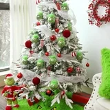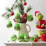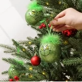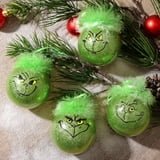 ❖ Grinch Christmas decorations indoor. Christmas tree balls ornaments with Grinch and green fuzzy hair.
